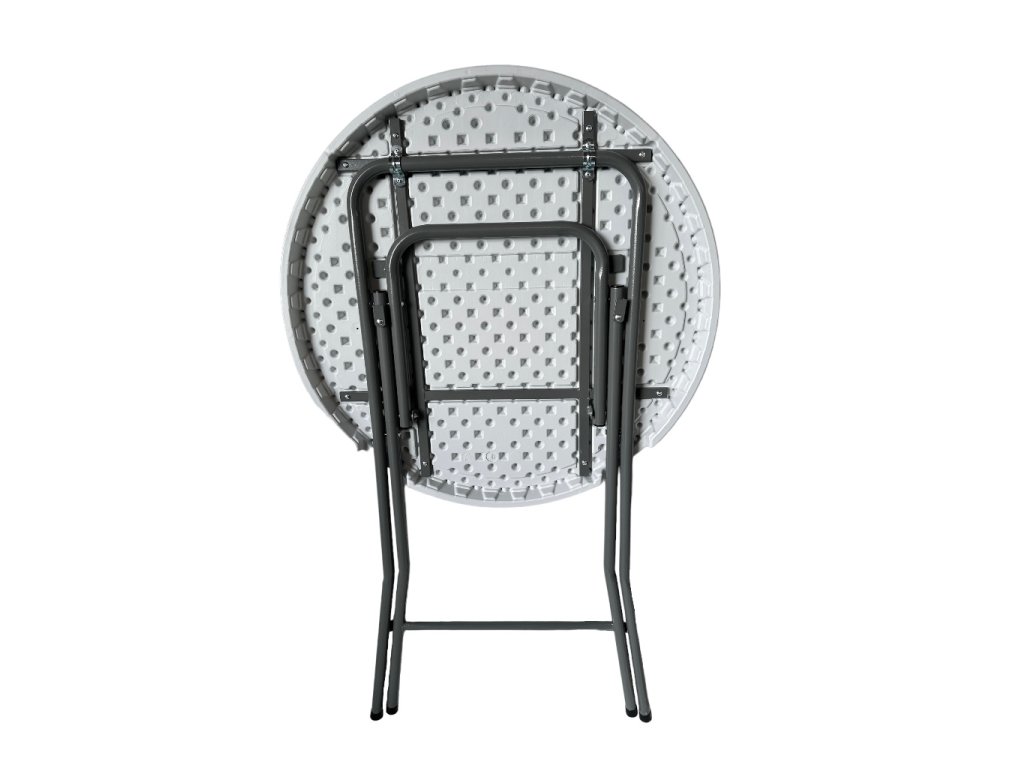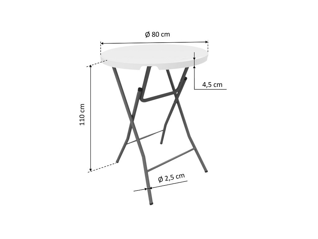 A professzionális összecsukható koktélbárasztal, más néven "bisztróasztal", akár 4 fő álló étkezésére is alkalmas. Használatával mindenféle rendezvényen helyet takaríthat meg, amelyre egyébként ülő vendégek számára lenne szüksége. Különböző divatos rendezvényekre alkalmas - esküvőkre, ünnepségekre, céges rendezvényekre - bárhol, ahol lenyűgözni szeretné vendégeit. A felső polietilén lap nagy tartósságú, könnyen mosható. A hagyományos bútorokhoz képest sokkal könnyebb kezelni, előnye a tökéletes összecsukhatóság és a mobilitás. Természetesen lehetőség van ismételt telepítésre és leszerelésre is. Még a legigényesebb üzemeltetési követelményeket is kielégíti mind a bérbeadás, mind a vendéglátóipar területén. Kompatibilis a hasonló méretű asztalok széles választékával. Könnyen mosható, könnyen karbantartható, szállítható és tárolható.