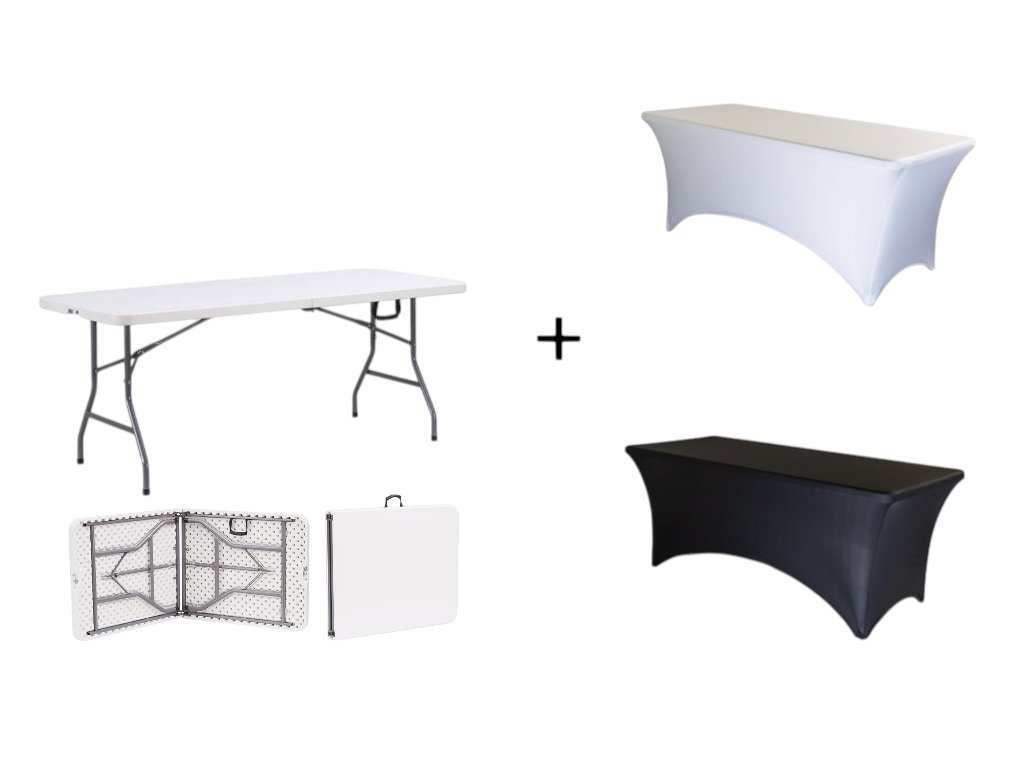 AKCIÓ! Összecsukható asztal 183x76 cm FEHÉR FÉL + terítő BASIC INGYENES