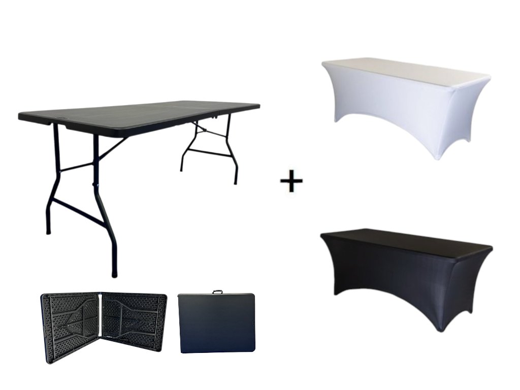 AKCIÓ! Összecsukható asztal 183x76 cm FEKETE FÉL + INGYENES ALAPVETŐ ASZTALTERŐ