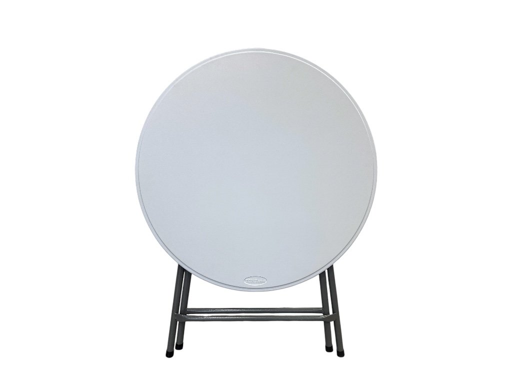 Professzionális, összecsukható, kerek kávézóasztal, amely 2 fő részére alkalmas. Különböző divatos rendezvényekre - esküvőkre, ünnepségekre, céges rendezvényekre - alkalmas, bárhol is szeretné lenyűgözni vendégeit. A felső polietilén lap nagy tartósságú, könnyen mosható. A hagyományos bútorokhoz képest sokkal könnyebb kezelni, előnye a tökéletes kompaktság és mobilitás. Természetesen lehetőség van ismételt telepítésre és leszerelésre is. Még a legigényesebb üzemeltetési követelményeket is kielégíti mind a bérbeadás, mind a vendéglátóipar területén. Számos hasonló méretű asztallal kompatibilis.