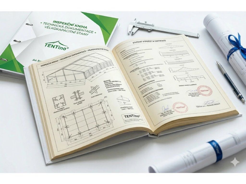 • Statikai számítás: A szerkezet stabilitásának részletes elemzése, amelyet egy erre felhatalmazott mérnök készít a ČSN EN 13782 szabvány (Ideiglenes szerkezetek - Sátrak - Biztonság) szerint.