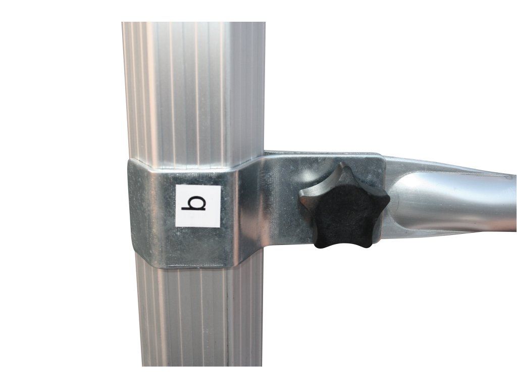• 1 db jobb és 1 db bal oldali horganyzott acél konzol a teleszkópos tartórúd sátorszerkezethez való rögzítésére