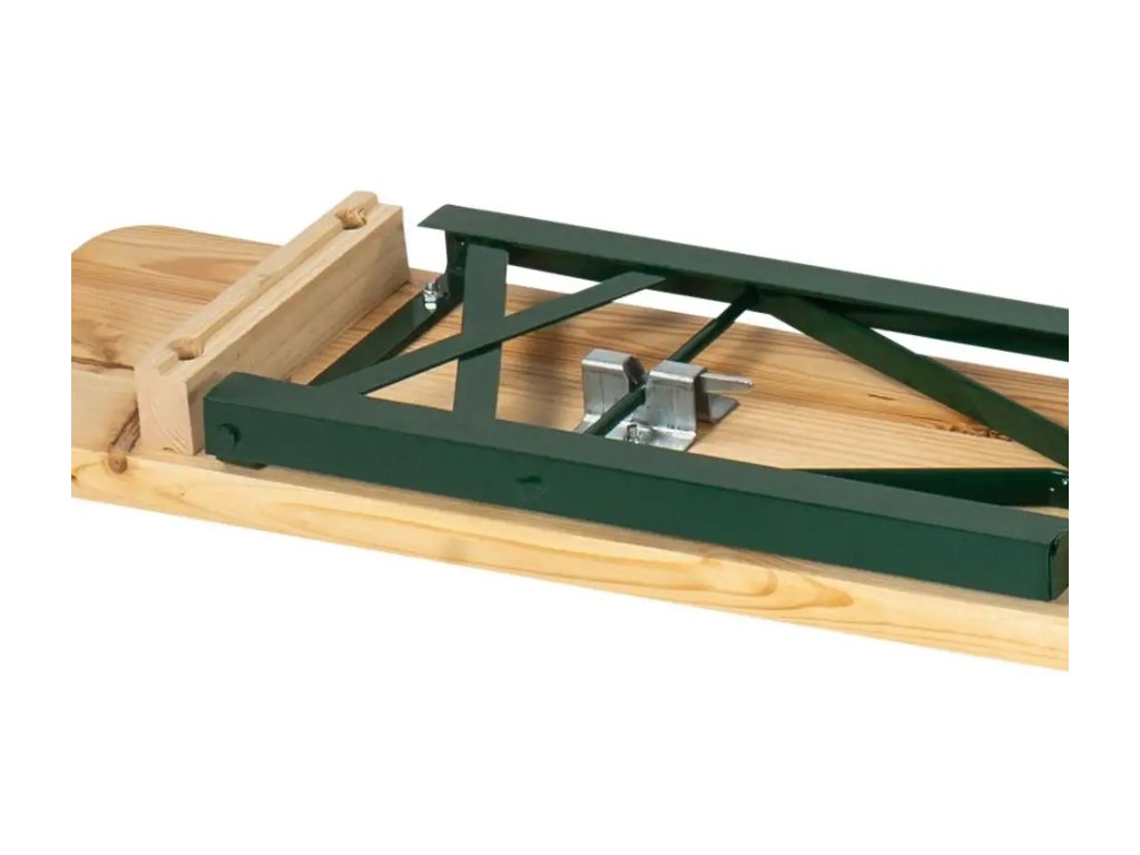 Az alap fém része masszív Třinec szalagból készült. Sötétzöld RAL 6005 színre festettük. Nem tartozik ide a vékonyra préselt fémlemez, amelyet az olcsó készletekben használnak. A padnak akár 450 kg-ot is el kell bírnia. Az alapzár vastag falú horganyzott acélból készül. A hegesztési folyamat után minden acél alkatrész a homokfúvó sorba kerül. Ez eltávolítja a salakot és a rozsdát a fémből. Csak ezután zsírtalanítják az alkatrészeket savas pH-jú fürdőben. Az alap alapvető előkészítése a festés előtt biztosítja, hogy a felvitt festékrétegek tökéletesen tapadjanak. A festék tart és nem válik le. Ugyanezt az előkészítési eljárást alkalmazzuk a zárak horganyzása előtt is.