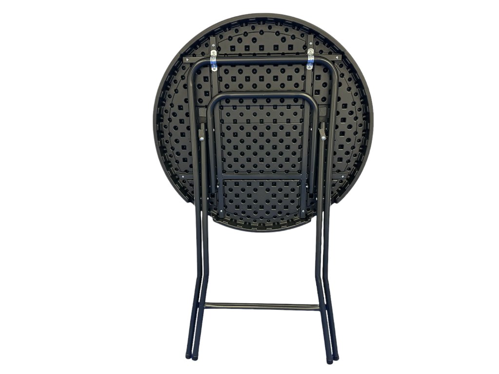 A professzionális összecsukható koktélbárasztal, más néven "bisztróasztal", akár 4 fő álló étkezésére is alkalmas. Használatával mindenféle rendezvényen helyet takaríthat meg, amelyre egyébként ülő vendégek számára lenne szüksége. Különböző divatos rendezvényekre alkalmas - esküvőkre, ünnepségekre, céges rendezvényekre - bárhol, ahol lenyűgözni szeretné vendégeit. A felső polietilén lap nagy tartósságú, könnyen mosható. A hagyományos bútorokhoz képest sokkal könnyebb kezelni, előnye a tökéletes összecsukhatóság és a mobilitás. Természetesen lehetőség van ismételt telepítésre és leszerelésre is. Még a legigényesebb üzemeltetési követelményeket is kielégíti mind a bérbeadás, mind a vendéglátóipar területén. Kompatibilis a hasonló méretű asztalok széles választékával. Könnyen mosható, könnyen karbantartható, szállítható és tárolható.