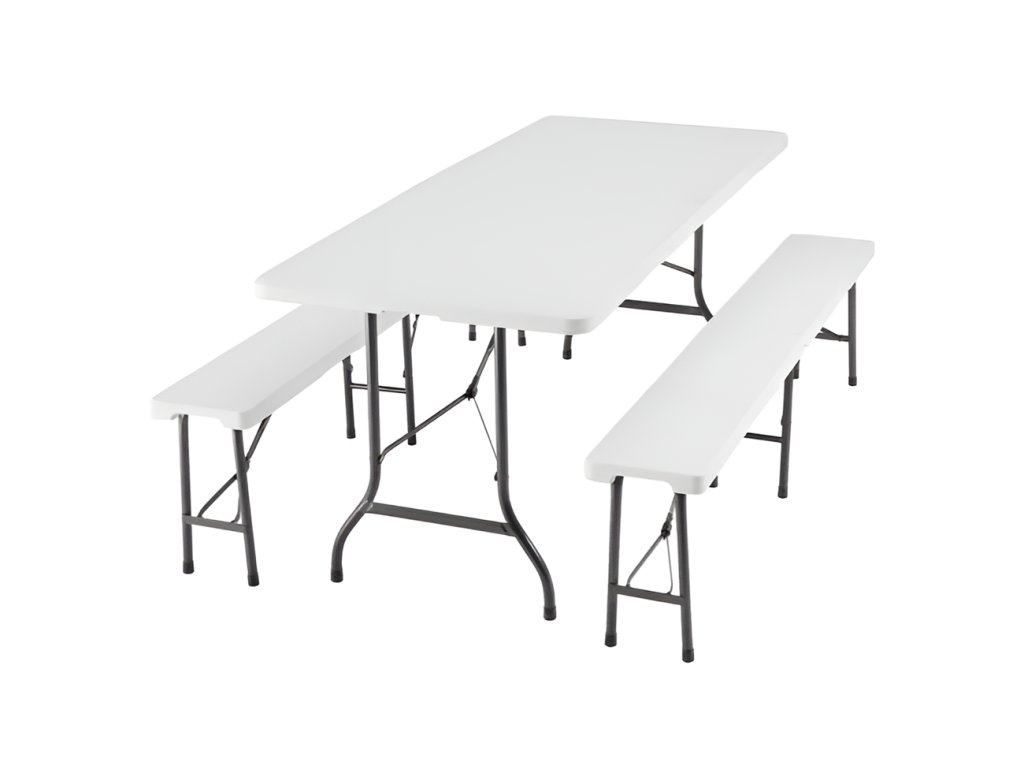 Ez a műanyag söröskészlet ideális grillezéshez, baráti összejövetelekhez vagy családi ünnepségekhez. Összecsukható kialakításának köszönhetően könnyen tárolható és helytakarékos. A söröskészlet ideális kültéri használatra is a kertben vagy a teraszon.