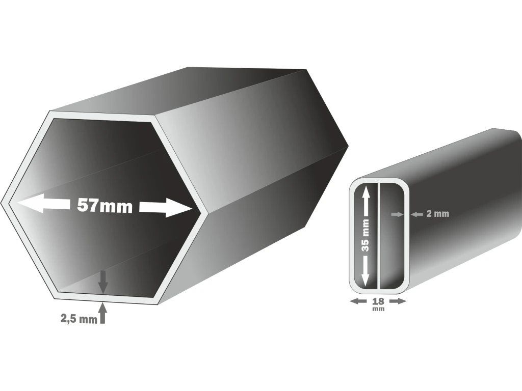 | ? Alumínium alsó lábprofil: | šestihran, průměr 5,0 cm, norma AW 6060 T66 |