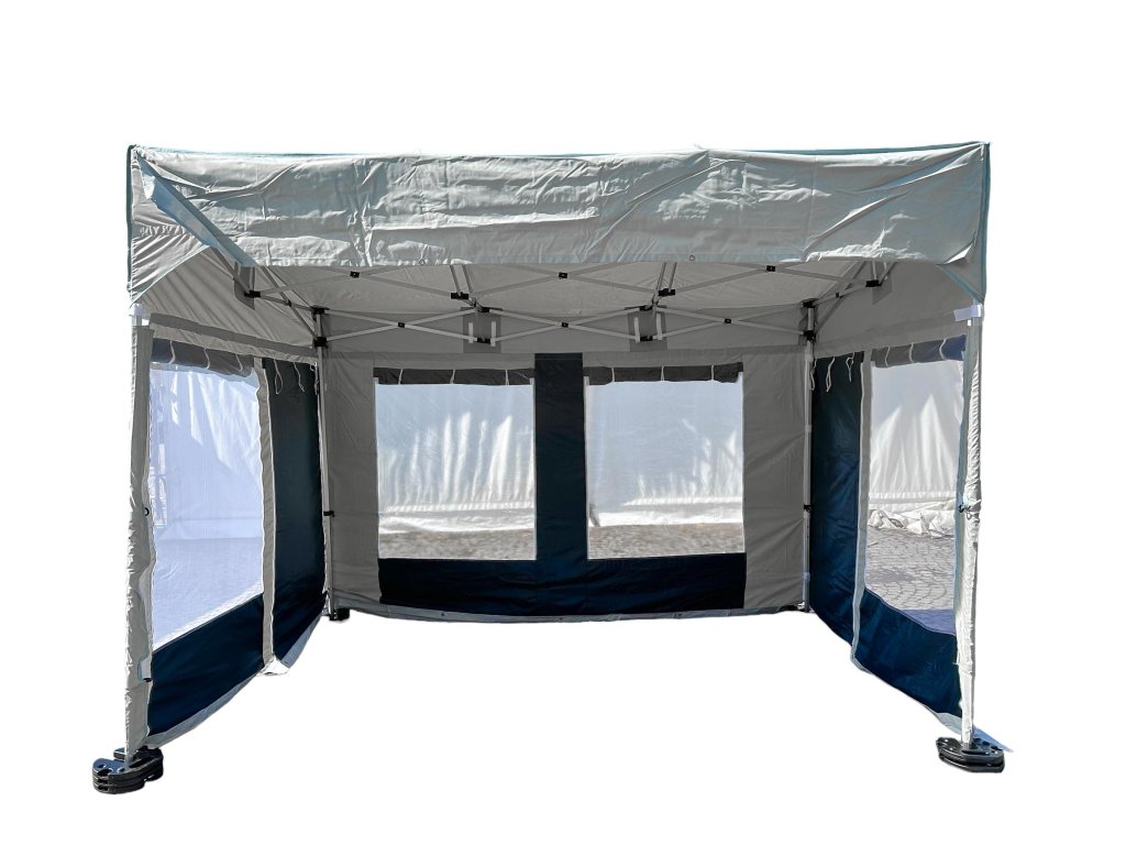 1x tető + 3 x oldalsó ponyva ajtókkal és ablakokkal, redőnyökkel