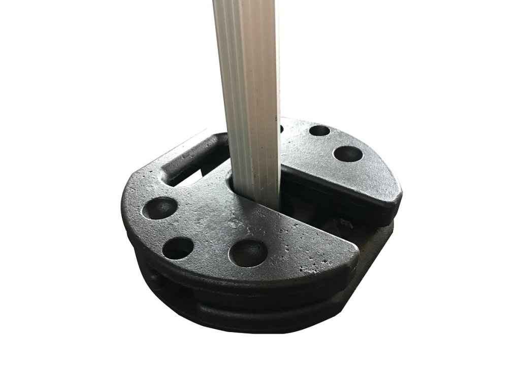 Rendkívül funkcionális és elegáns sátorsúlyként szolgál, amelyet olyan helyeken is használhat, ahol a rögzítés nem lehetséges (beton, aszfalt, térkő).