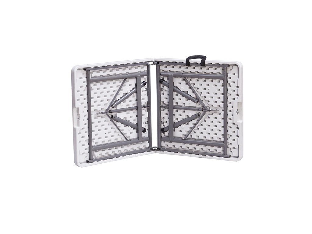Professzionális összecsukható kempingasztal, 4 fő részére alkalmas. Különböző divatos rendezvényekre alkalmas - esküvőkre, ünnepségekre, céges rendezvényekre - bárhol, ahol lenyűgözni szeretné vendégeit. A felső polietilén lap nagy tartósságú, könnyen mosható. A hagyományos bútorokhoz képest sokkal könnyebb kezelni, előnye a tökéletes kompaktság és mobilitás. Természetesen lehetőség van ismételt telepítésre és leszerelésre. Még a legigényesebb üzemeltetési követelményeket is kielégíti mind a bérbeadás, mind a vendéglátóipar területén. Számos hasonló méretű asztallal kompatibilis.