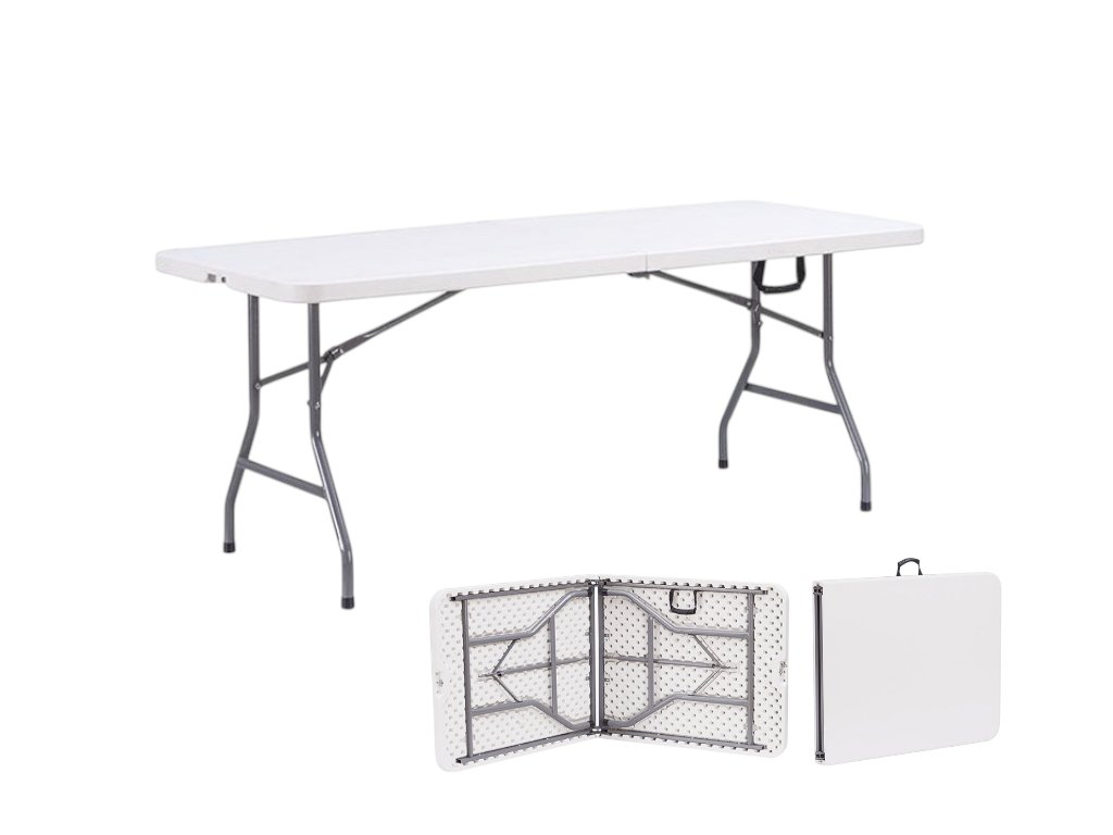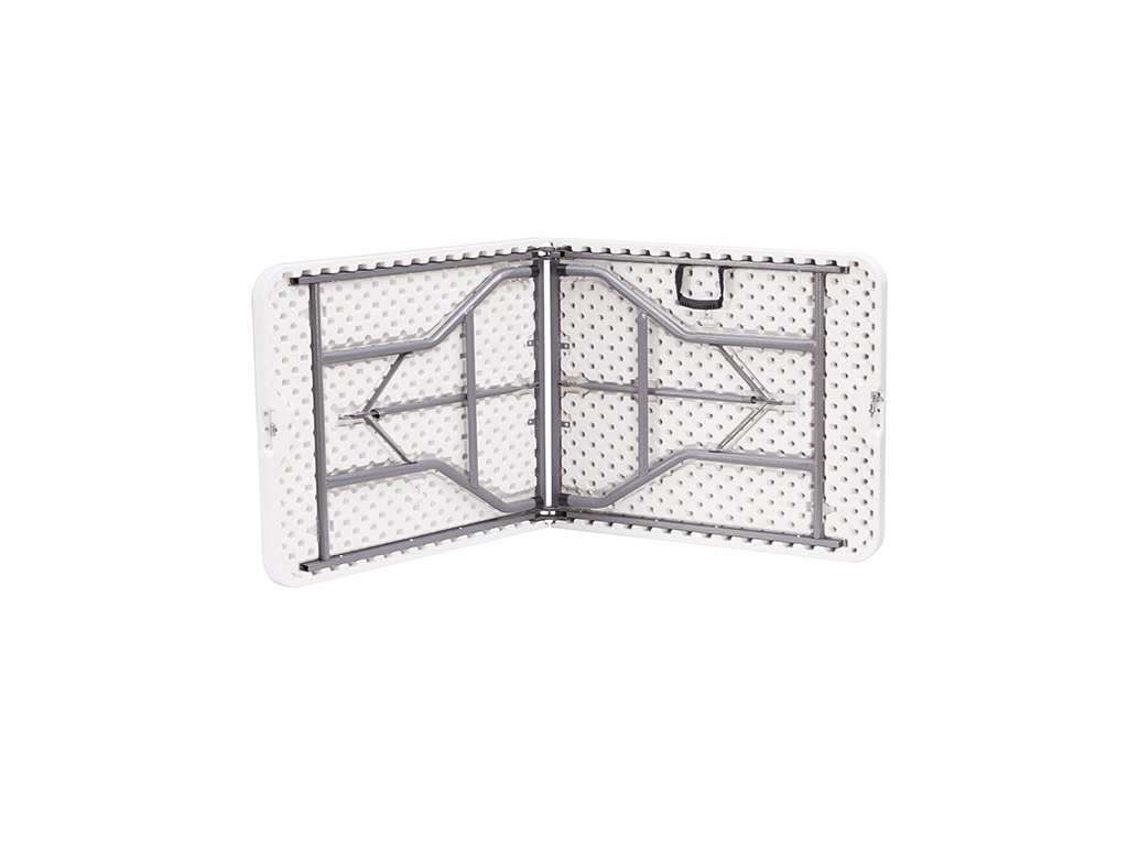 Professzionális összecsukható kempingasztal, 4-6 fő részére alkalmas. Különböző divatos rendezvényekre - esküvőkre, ünnepségekre, céges rendezvényekre - alkalmas, bárhol, ahol lenyűgözni szeretné vendégeit. A felső polietilén lap nagy tartósságú, könnyen mosható. A hagyományos bútorokhoz képest sokkal könnyebb kezelni, előnye a tökéletes kompaktság és mobilitás. Természetesen lehetőség van ismételt telepítésre és leszerelésre. Még a legigényesebb üzemeltetési követelményeket is kielégíti mind a bérbeadás, mind a vendéglátóipar területén. Számos hasonló méretű asztallal kompatibilis.