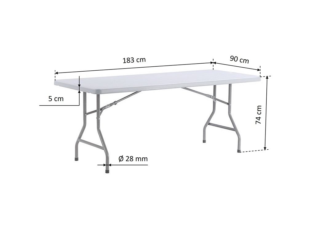 A professzionális összecsukható asztal 6-8 fő befogadására alkalmas. Különböző divatos rendezvényekre - esküvőkre, ünnepségekre, céges rendezvényekre - alkalmas, bárhol is szeretné lenyűgözni vendégeit. A felső polietilén lap nagy tartóssággal rendelkezik, amely könnyen mosható. A hagyományos bútorokhoz képest sokkal könnyebb kezelni, előnye a tökéletes kompaktság és mobilitás. Természetesen lehetőség van ismételt telepítésre és leszerelésre. Még a legigényesebb üzemeltetési követelményeket is kielégíti mind a bérbeadás, mind a vendéglátóipar területén. Számos hasonló méretű asztallal kompatibilis.