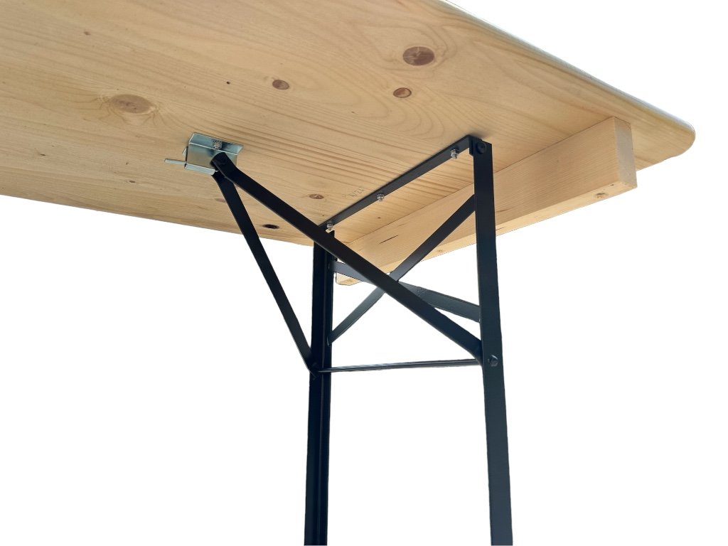 A kerti szett fa része kiváló minőségű lucfenyő illesztésekből készült , és alapfelszereltségként háromszor lakkozott átlátszó lakkal . Az asztal és a pad felületét képező vastag lucfenyő- vagy fenyőillesztés gombaölő kezeléssel van ellátva a penész ellen. Nagyon könnyen tisztítható. A három lakkréteget UV-alagútban is keményítik . Az alagútban a lakk maximális keménységet ér el , és a fafelületnek "hidrofób - vízálló" tulajdonságot kölcsönöz. Így a sörkészletet beltéren és kültéren egyaránt használhatja , és egyáltalán nem baj, ha nedvesség éri. Ha a lakk felső rétegeit nem károsítják a kopások és a mély barázdák, az esővíz nem jut be a fába.