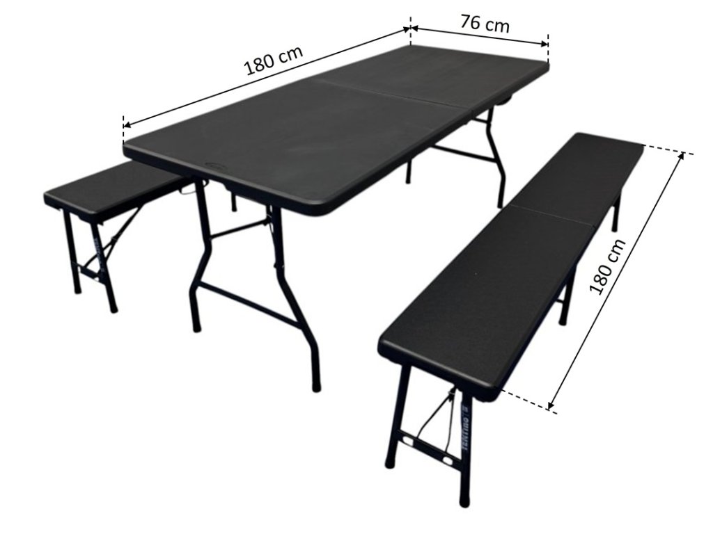 Összecsukható műanyag sörkészlet FEKETE - 180 cm