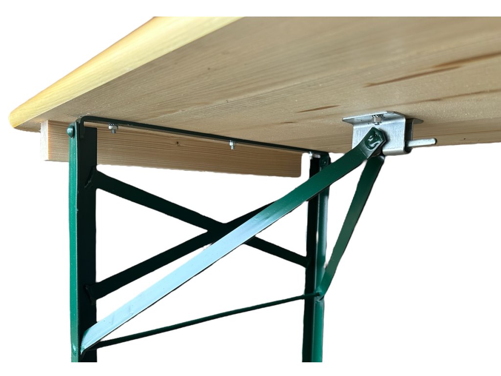 A kerti szett fa része kiváló minőségű lucfenyő illesztésekből készült , és alapfelszereltségként háromszor lakkozott átlátszó lakkal . Az asztal és a pad felületét képező vastag lucfenyő- vagy fenyőillesztés gombaölő kezeléssel van ellátva a penész ellen. Nagyon könnyen tisztítható. A három lakkréteget UV-alagútban is keményítik . Az alagútban a lakk maximális keménységet ér el , és a fafelületnek "hidrofób - vízálló" tulajdonságot kölcsönöz. Így a sörkészletet beltéren és kültéren egyaránt használhatja , és egyáltalán nem baj, ha nedvesség éri. Ha a lakk felső rétegeit nem károsítják a kopások és a mély barázdák, az esővíz nem jut be a fába.