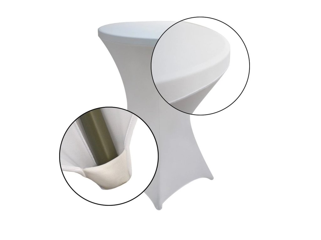 Igen, az asztalterítő 70 cm átmérőjű bisztróasztalokon is használható . A varrás ekkor az asztallap alsó szélén lesz, ami rendben van. Személyesen teszteltem a kölcsönzőnkben ! Az asztalterítő kissé kevésbé lesz feszes, de még mindig kellően feszes, gyűrődések és a legkisebb megjelenési hibák nélkül. Abban az esetben, ha egy 80 cm átmérőjű asztalterítőt egy 70 cm-es asztallapra helyezünk,egy 80 cm átmérőjű rugalmas kupak használatát javasoljuk.