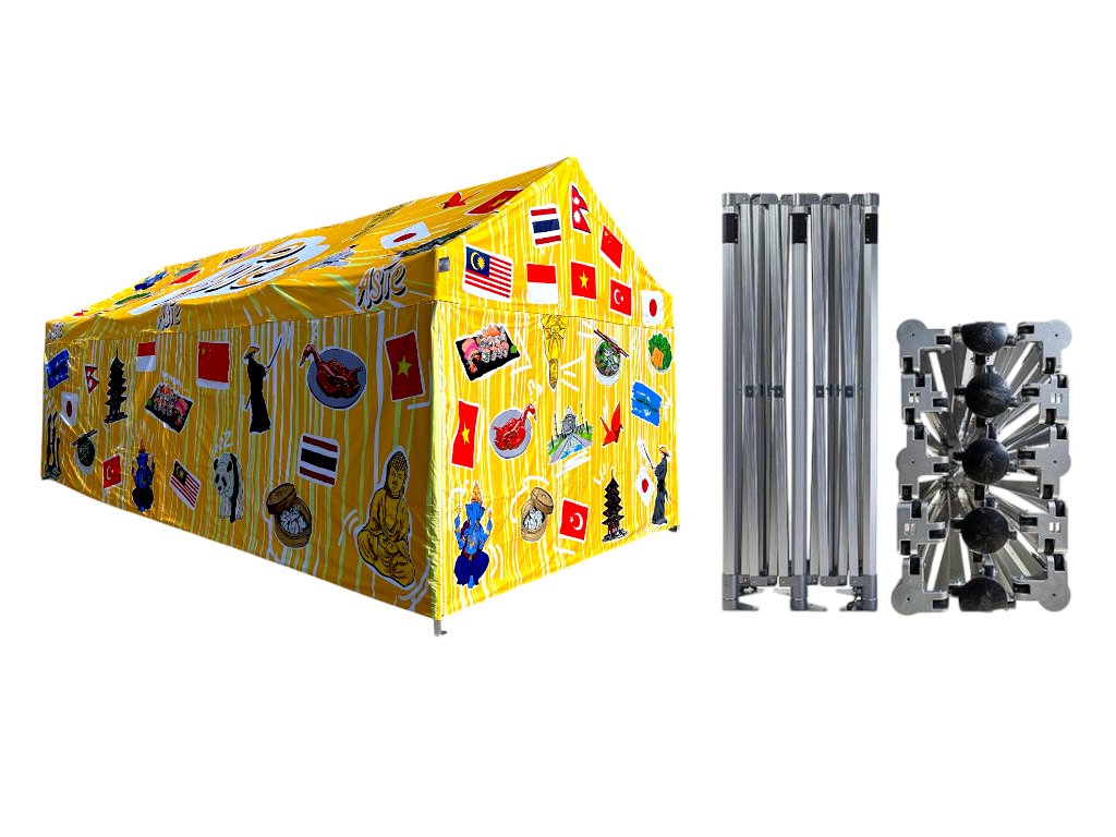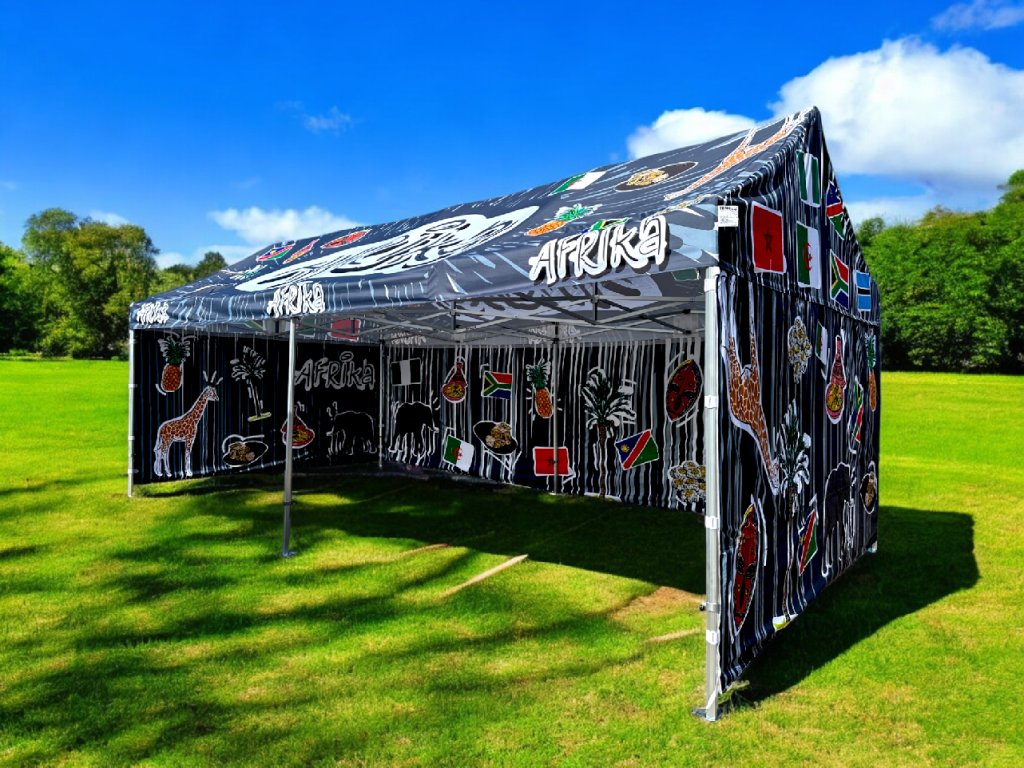 VIDEO- Nůžkový párty stan 4x8 m GABLED s jednostranným potiskem