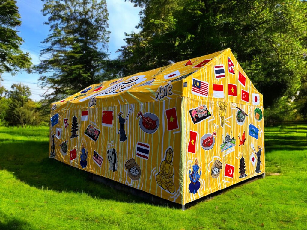 3. LEHETŐSÉG - tető teljes hosszúságú nyomtatással a tetején és fodros díszítéssel + 2 db 3 m-es oldalsó panel + 1 db 6 m-es oldalsó panel teljes egyoldalas, teljes hosszúságú nyomtatással + 2 db 3 m-es féloldalas panel teljes egyoldalas, teljes hosszúságú nyomtatással