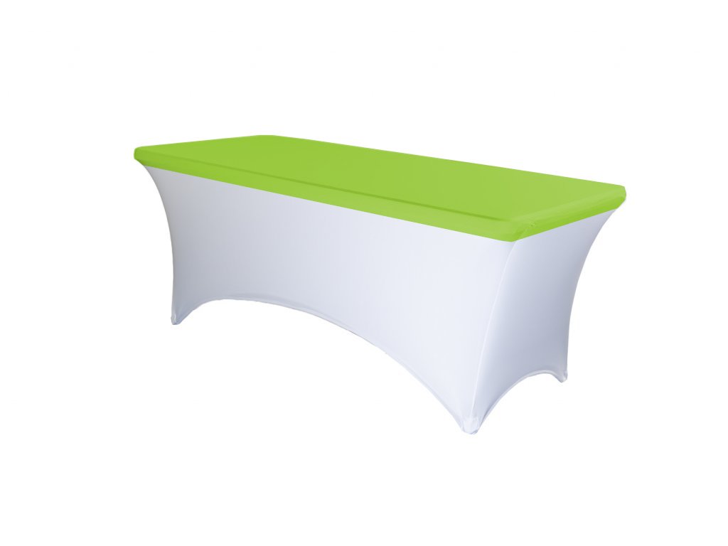 A rugalmas kupakok remek megjelenést kölcsönöznek az összecsukható bankett-asztaloknak. Könnyen karbantarthatók, nem kell vasalni, és tökéletesen a helyükön maradnak. Örömmel nyomtatunk Önnek teljes terítőket vagy kupakokat.
