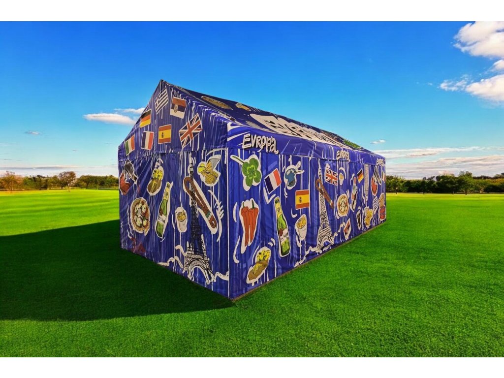 3. LEHETŐSÉG - tető teljes hosszúságú nyomtatással a tetején és fodros díszítéssel + 2 db 3 m-es oldalsó panel + 1 db 6 m-es oldalsó panel teljes egyoldalas, teljes hosszúságú nyomtatással + 2 db 3 m-es féloldalas panel teljes egyoldalas, teljes hosszúságú nyomtatással