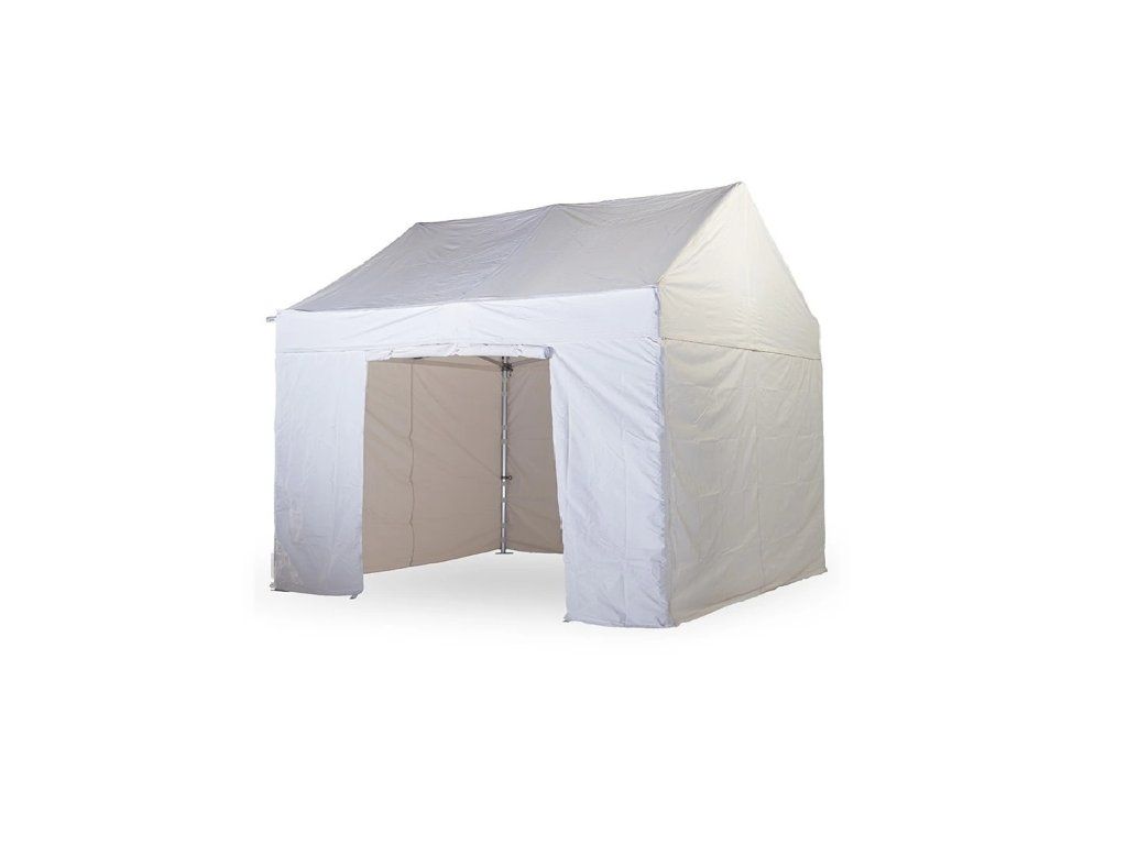A nyeregtető nem csak a külsőről szól. Praktikus megoldás az árusok számára – az esővíz csak két oldalra folyik (nem előre a vásárlókra), és a függőleges oromzat tökéletes felületet biztosít a stand látható jelzéseinek elhelyezésére. Teljes burkolatkészletünk biztosítja, hogy a sátor belseje száraz és huzatmentes maradjon még a vásárok és piacok nehézkes körülményei között is.