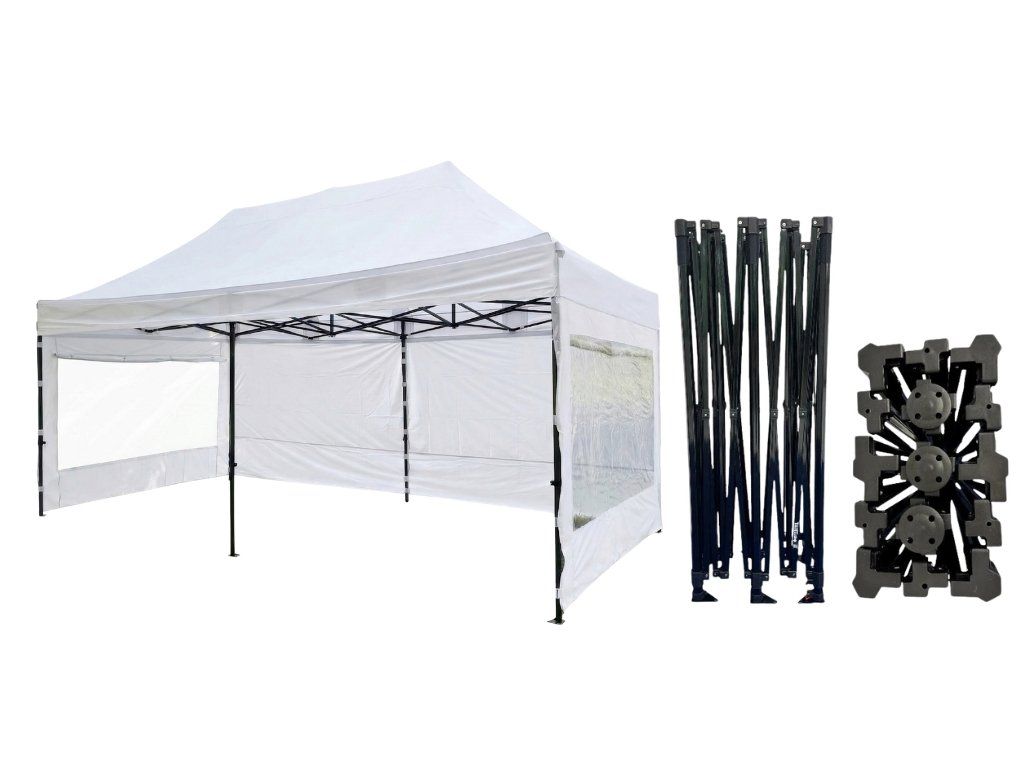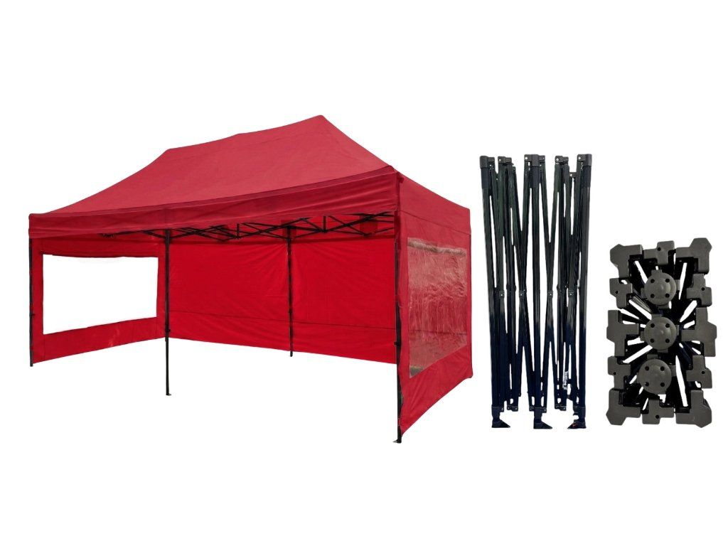 1x tető + 4x oldalponyva – 1x teli oldalfal, 2x ablakos, 1x ajtós oldalfal